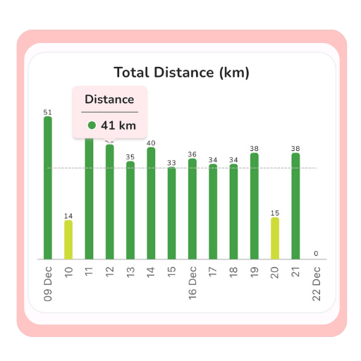Check 14 days graphical report of your vehicle in Analytics section by default and change the dates with calender option available on the top section.